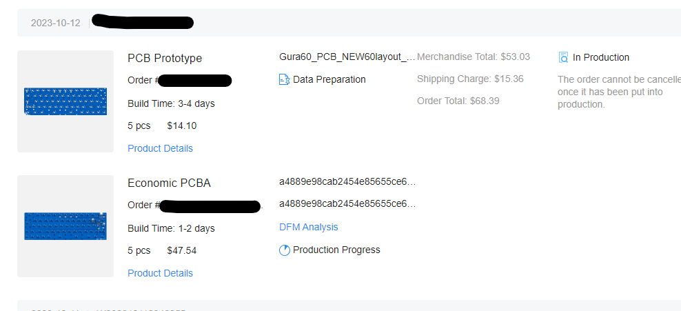 9월말에 EASYeda라는 PCB 설계 툴을 접하면서 툴을 간단하게 익히고 10월 1일부터 PCB 설계를 시작해서 10월 12일에 완성을 하고 JLCPCB에서 자작 키보드 기판 주문을 하였습니다